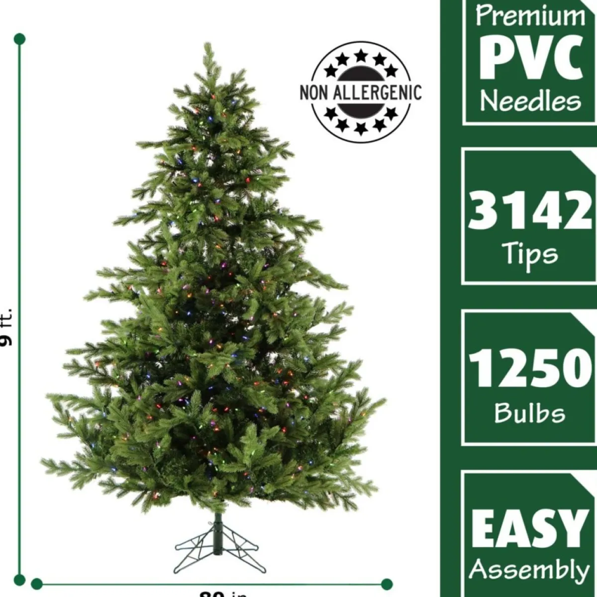 Fraiser Hill Farms 9-Ft. Foxtail Pine Christmas Tree With Multi-Color Led String Lighting
