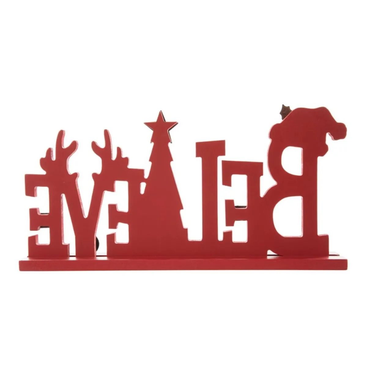 Glitzhome 14In L Wooden Christmas Believe Table Decor Clearance