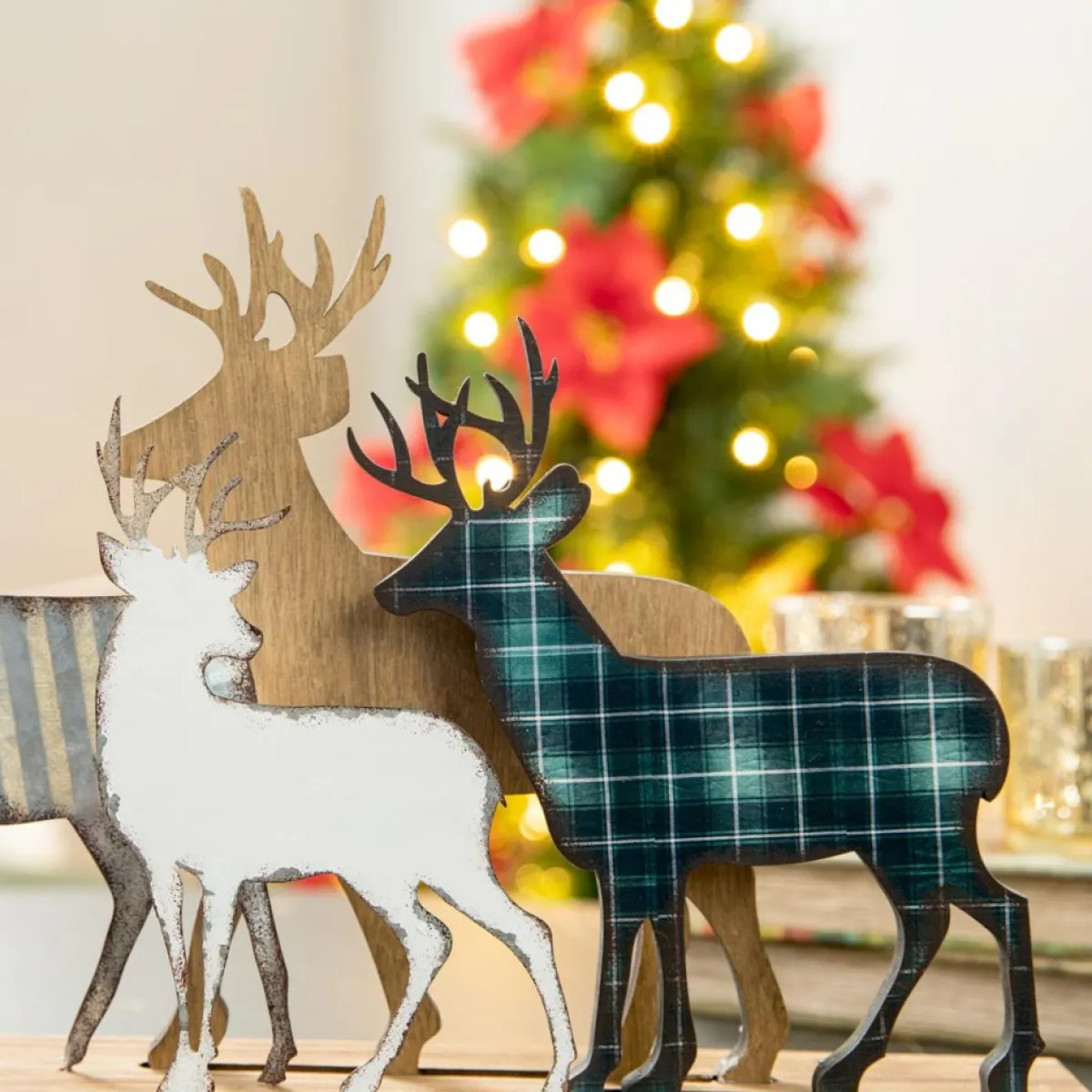 Glitzhome Galvanized Metal And Wooden Reindeer Table Decor