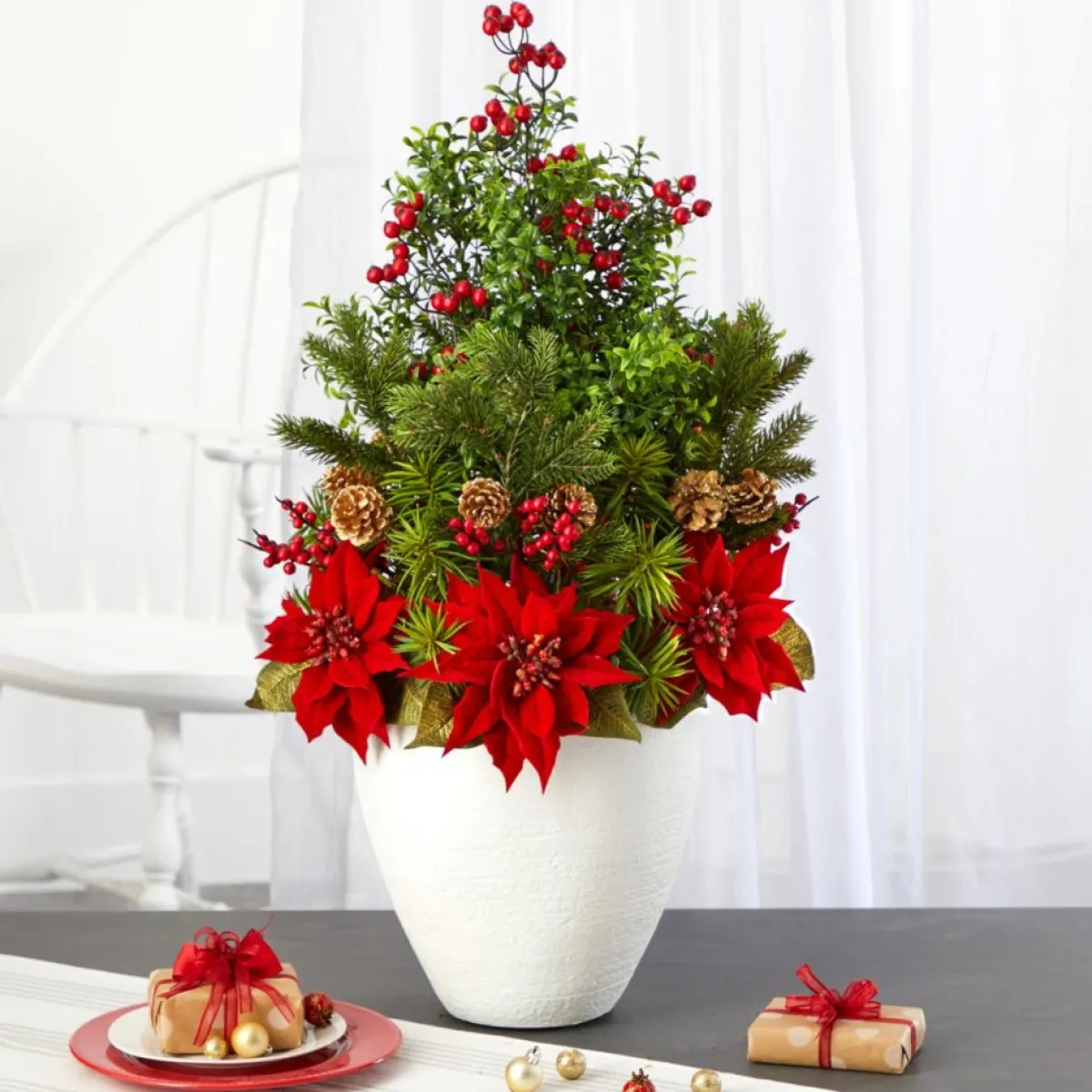 Be the first to review “Nearly Natural 32 In. Poinsettia, Boxwood And Succulent Artificial Arrangement In White Vase Hot” Cancel reply