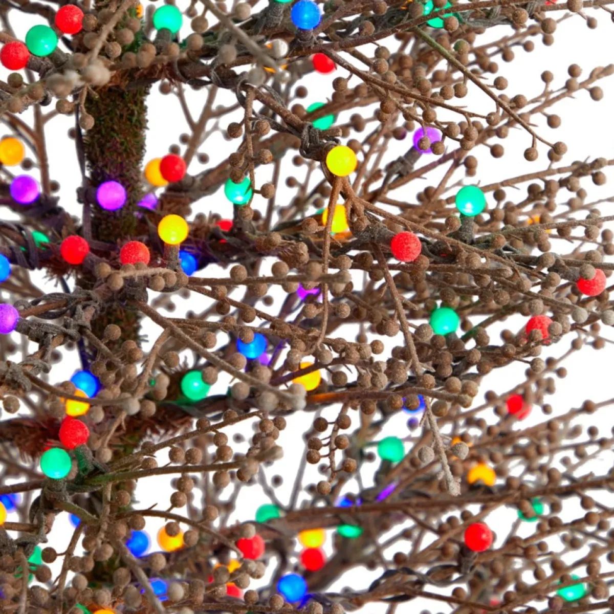 Are You Seeking A Different Type Of Christmas? The Charlie Brown Christmas Tree Gets A Modern Makeover With This Minimalist-Inspired Frosted Berry Twig Artificial Christmas Tree. Lifelike Twigs House 350 Multicolored Gum Ball Led Lights That Are More Energy-Efficient And Bring A Rainbow Of Colors. Sparse By Design, Feel Free To Bend The Branches And Display Your Favorite Ornaments Or None At All! The Stunning Gum Balls Provide All The Decor You Need. Stabilized In A Metal Stand, This Fake Christmas Tree Is 6′ High.