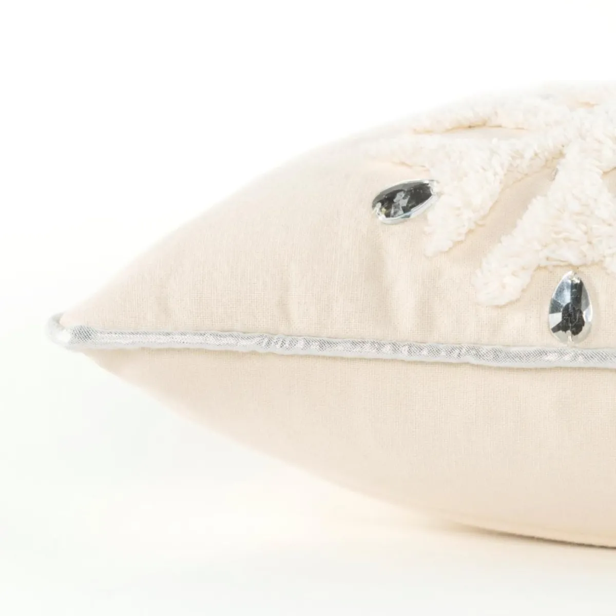 Tuft Embroidered On A Natural Cotton Casement, This 14″X20″ Natural Poly Filled Pillow Features A Light Natural Embroidery. Medium Nap Height Add Dimension And Medium Texturing. Mirror Backed Crystals Are Hand Applied To Accent The Sparkle Of The Winter Season. This Snowflake Pillow Is Framed By A Silver Contrast Welting. It Also Sports A Solid Matching Back With A Hidden Zipper Closure For Ease Of Fill.